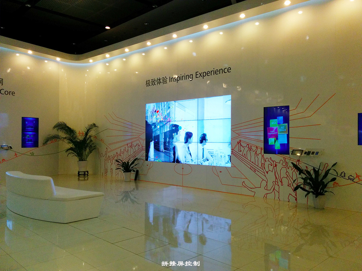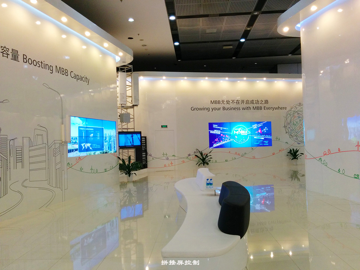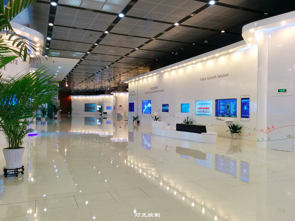 此次打造的展廳以展示華為的科技產(chǎn)品和技術(shù)手段為主,以傳統(tǒng)簡裝為基調(diào),白色為主色調(diào),藍(lán)色點(diǎn)綴。所有展示內(nèi)容包括產(chǎn)品影片、華為平臺(tái)、產(chǎn)品程序、解決方案程序、動(dòng)態(tài)海報(bào)等都是通過大屏或觸控大屏呈現(xiàn)。以最直觀最直接的方式將華為的展示意圖表現(xiàn)的淋漓盡致。